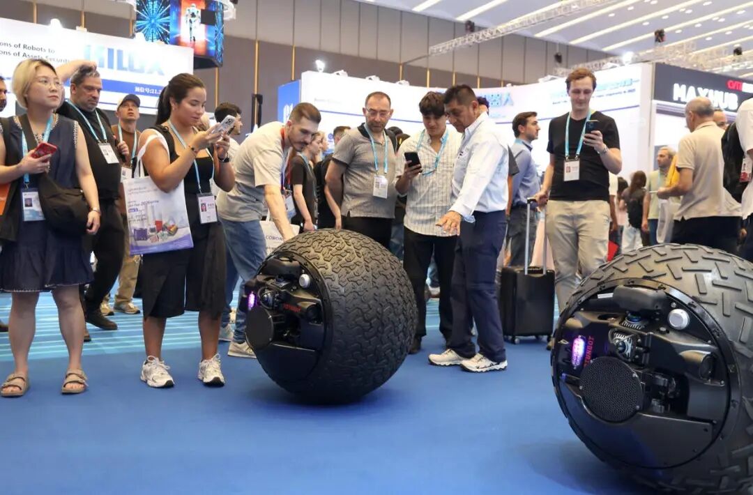 逻腾科技有限公司副总经理表示,今年上半年的订单比一年前翻了一番。该公司生产的水陆两栖球形机器人可用于警察巡逻或核电站检查。